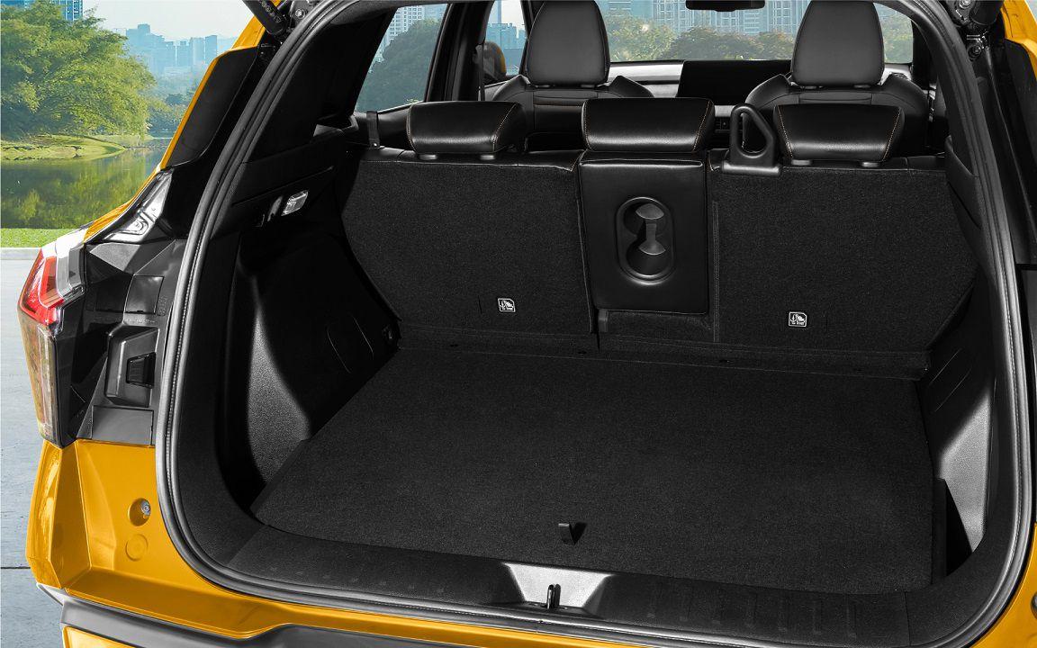 Mặc dù thân xe Mitsubishi Xforce có kích thước khá khiêm tốn, thế nhưng không gian cho khoang hành lý lại khá tiện lợi. Người dùng có thể gập hàng ghế sau theo tỉ lệ 40/20/40 để tăng diện tích để thêm đồ.